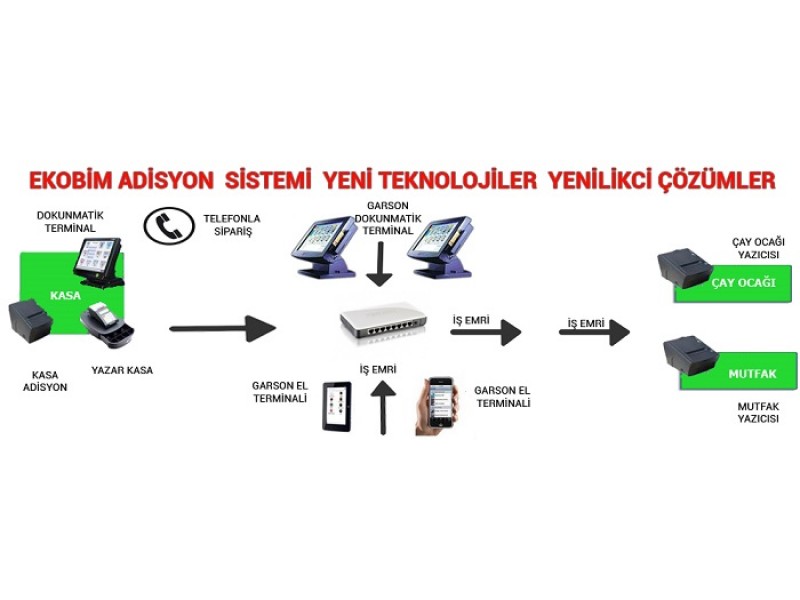 Müşterilerinizin siparişlerini hızlı ve hatasız olarak sisteme girebilirsiniz. Müşteri siparişlerini el terminali, dokunmatik ekran yada tabletlerden girdiğiniz anda mutfaktaki yazıcılardan aynı anda otomatik olarak çıkar. Böylelikle mutfak personeli ile garsonlar arasında müşteri siparişlerini yanlış anlama durumları sona ermiş olur. Yanlış anlaşılan siparişleri engelleyerek, hem zaman kaybının önüne geçer hem de stok sarfiyatını ortadan kaldırırsınız. Mutfakta hazırlanan siparişler, masalara hızlı ve hatasız olarak dağıtılır. Satışı yapılan ürünler, stoklardan otomatik olarak düşer. Ürünleri gruplandırabilir, ürünler arasında en çok satılanlar/ en az satılanlar gibi ayrıntılı istatistik raporları alabilirsiniz. Resimli menüler ile dokunmatik ekran, el terminali, tablet ile satış yapabilirsiniz. Daha önceden kaydı açılmış carilerin adisyonlarına anında fatura kesebilirsiniz. Muhasebe entegrasyonu ile cari hesap takibi yapabilirsiniz,