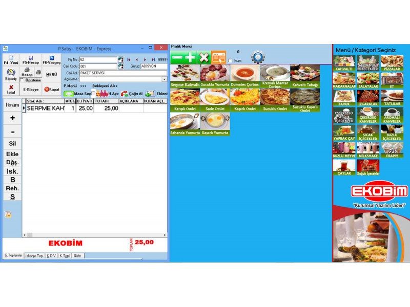 Restaurant, Cafe, Bar, Fast Food vb. işletmeler için adisyon ve paket servis takip programıdır.